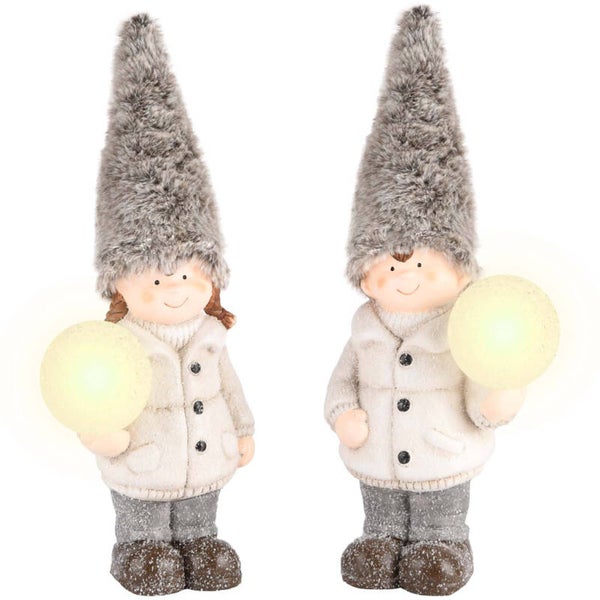 winterkind grijs met sneeuwbal, led