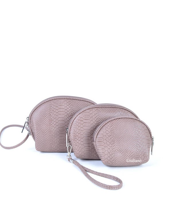 Kunstlederen schoudertas met een slangenpatroon met bijpassende etui en portemonnee.