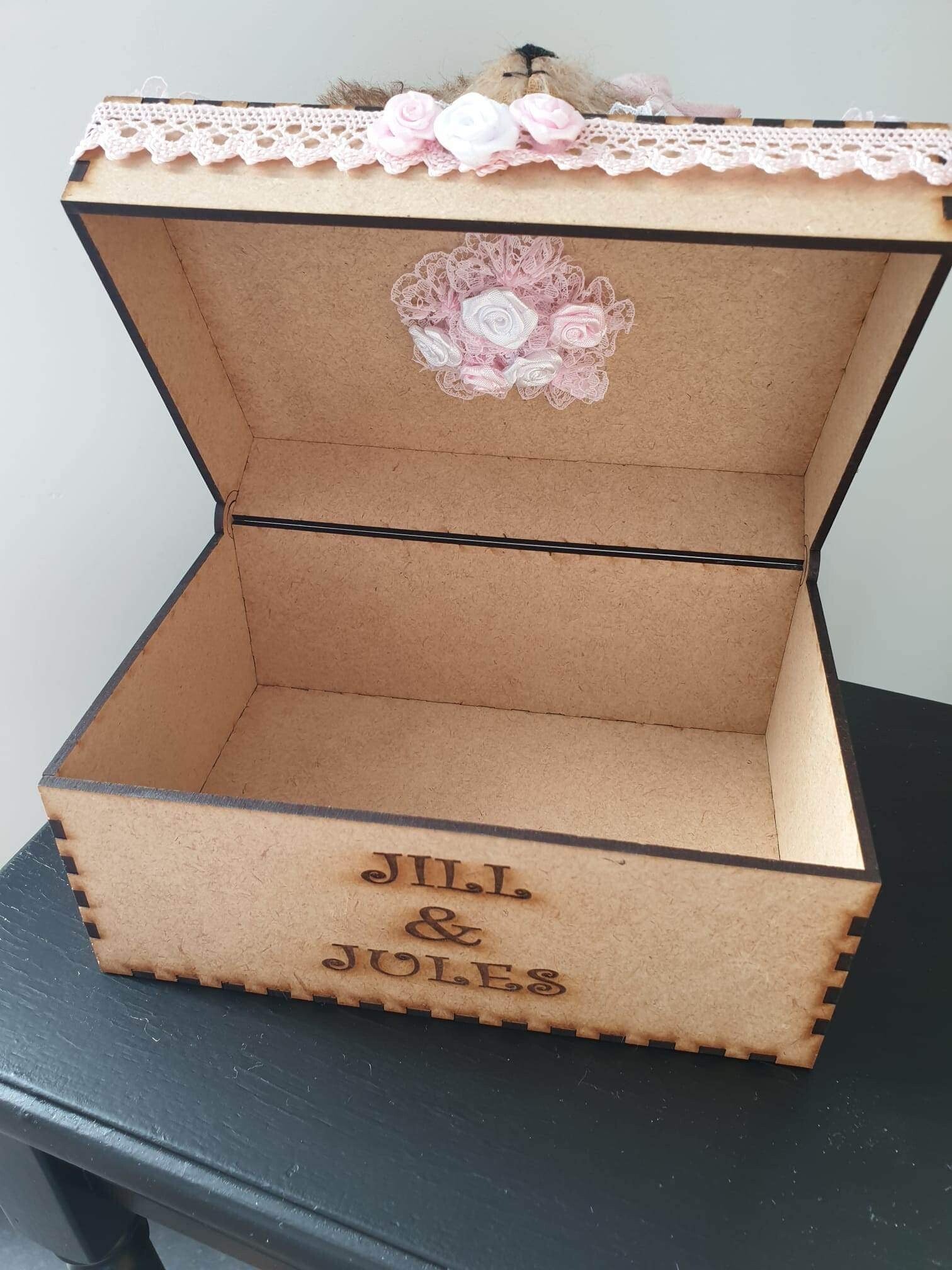 Een leuk gepersonaliseerd houten doosje waarbij je zelf het beertje naait en de doos kan aankleden.